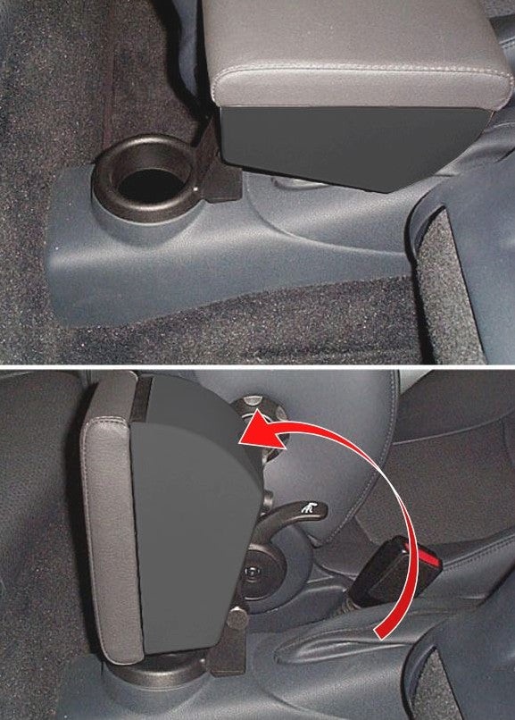Bracciolo regolabile in lunghezza e ribaltabile per Mini One Cooper (2007-2013). Dotato di uno spazioso portaoggetti e di un morbido cuscino. Facendo scorrere in avanti il cuscino si accede al portaoggetti sottostante (vedi foto nella gallery). All’interno del portaoggetti è presente un comodo inserto portabicchiere.