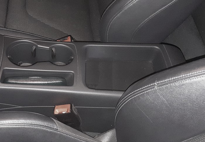 Il bracciolo si solleva (ribaltandosi all’indietro) permettendo l’accesso al portaoggetti originale presente sul tunnel centrale dell’auto.