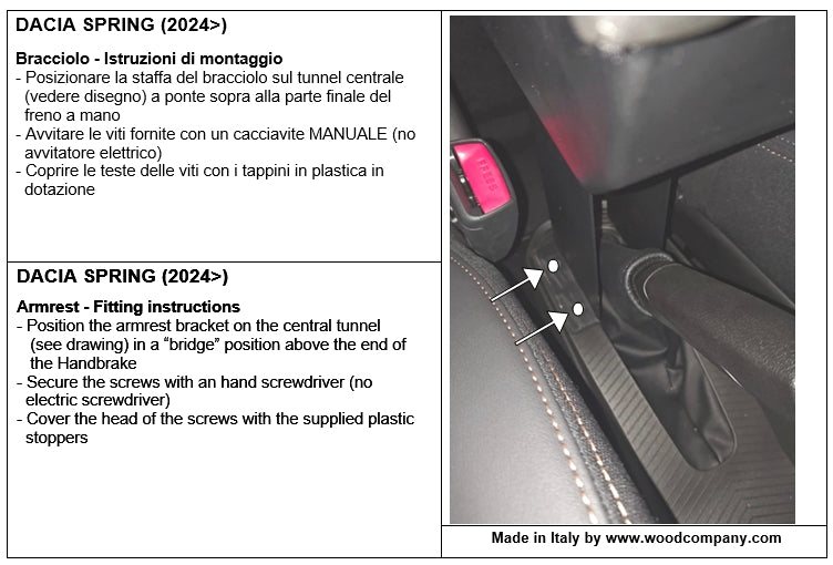 Bracciolo regolabile in lunghezza specifico per Dacia Spring (2024>).