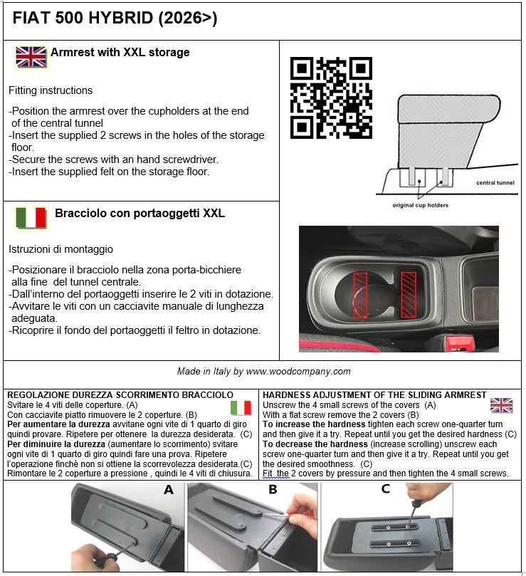 Bracciolo mod. PREMIUM per Fiat 500 HYBRID (2026>)