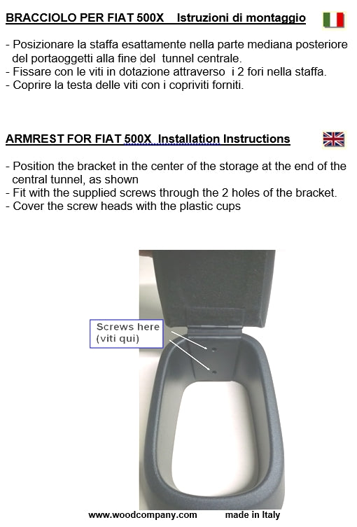 Prodotto progettato e realizzato espressamente per questo modello di auto, non si tratta di un bracciolo universale adattato. Realizzato interamente in Italia da esperti artigiani, utilizzando solamente materiali di alta qualità.