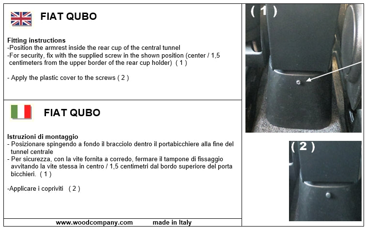 Bracciolo regolabile in lunghezza specifico per Fiat Qubo (2008-2019) con installazione in “PLUG-IN” a pressione, senza bisogno di viti, evitando quindi di danneggiare l’auto praticando fori.
