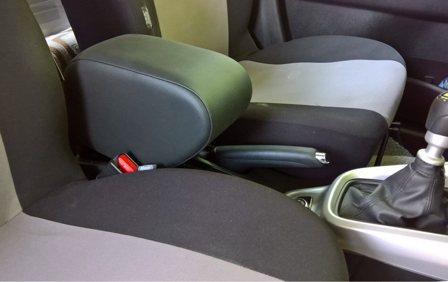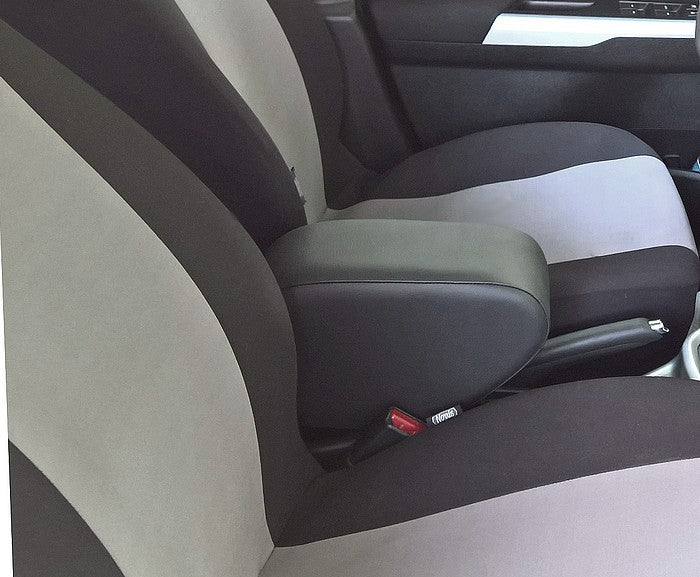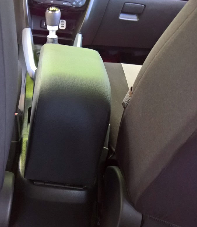 Il bracciolo si solleva (ribaltandosi all’indietro) permettendo l’accesso al portaoggetti originale presente sul tunnel centrale dell’auto.